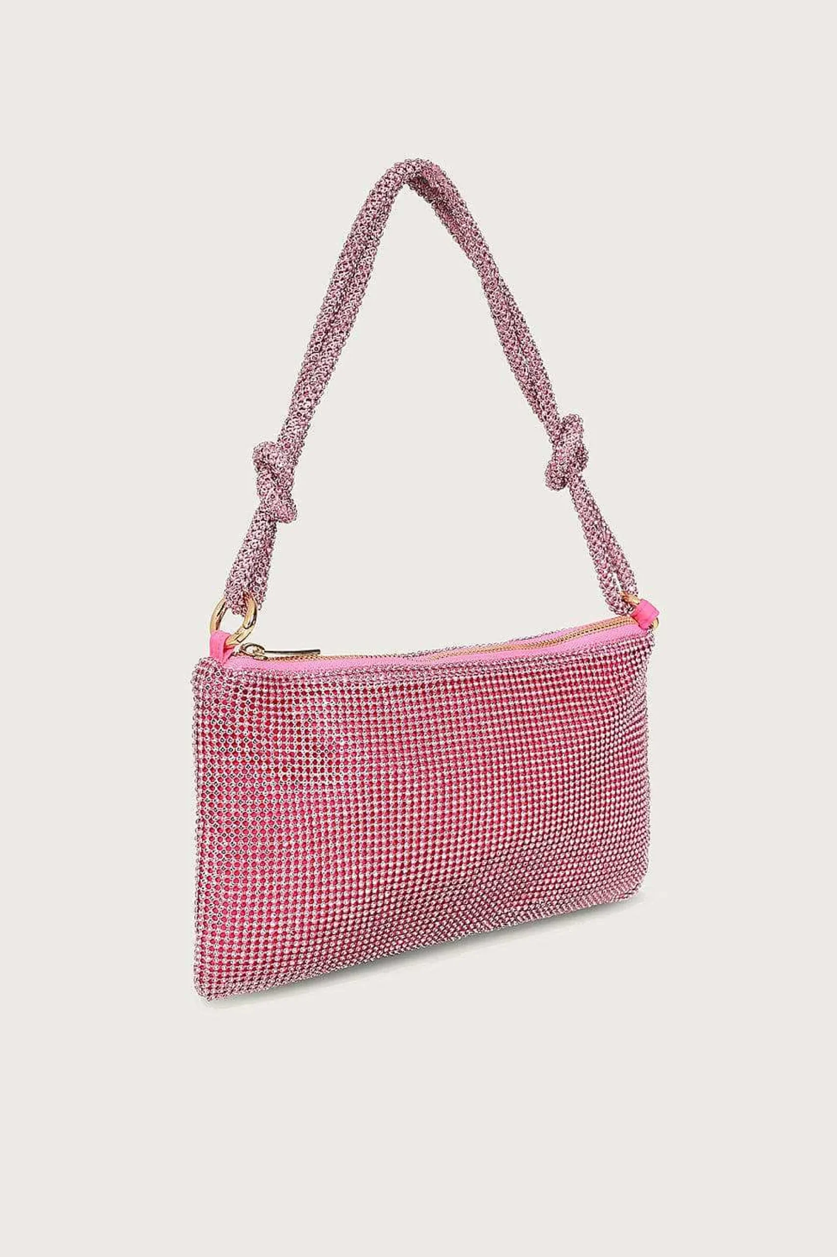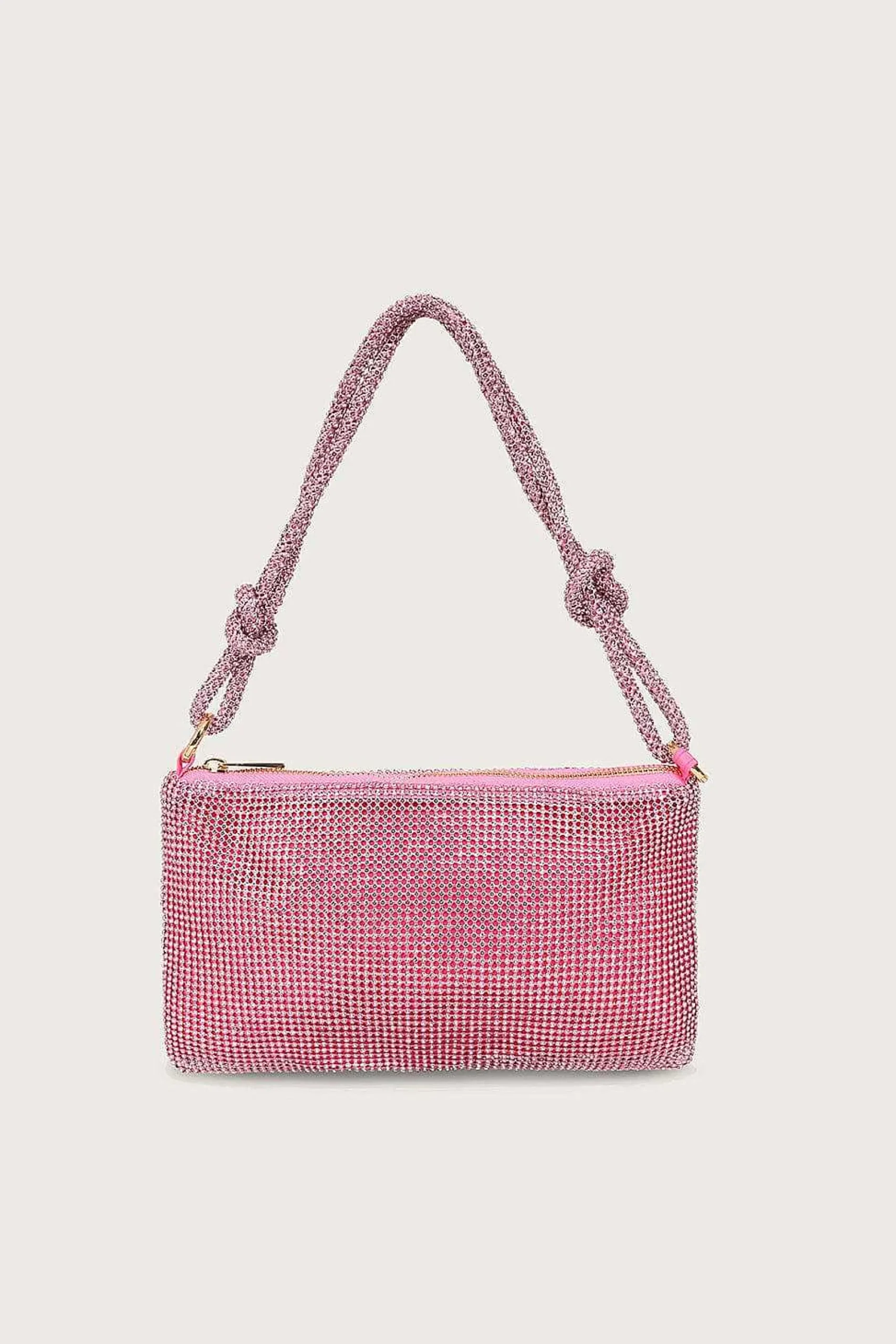 Elevate Your Style With The Dazzling Allure Of The Dina Rhinestone Mini Shoulder Bag In Pink. Crafted With Meticulous Attention To Detail, The Exterior Of The Bag Is Adorned With Shimmering Rhinestones That Catch The Light With Every Movement, Creating A Mesmerizing Sparkle. The Soft Pink Hue Adds A Feminine Charm, While The Compact Size Makes It Both Practical And Chic. Equipped With A Sleek Shoulder Strap And Magnetic Closure, This Mini Bag Offers Effortless Practicality, Allowing You To Carry It Elegantly Over The Shoulder. Perfect Paired With A Cocktail Dress For A Night On The Town Or Adding A Touch Of Glamour To Your Everyday Ensemble.