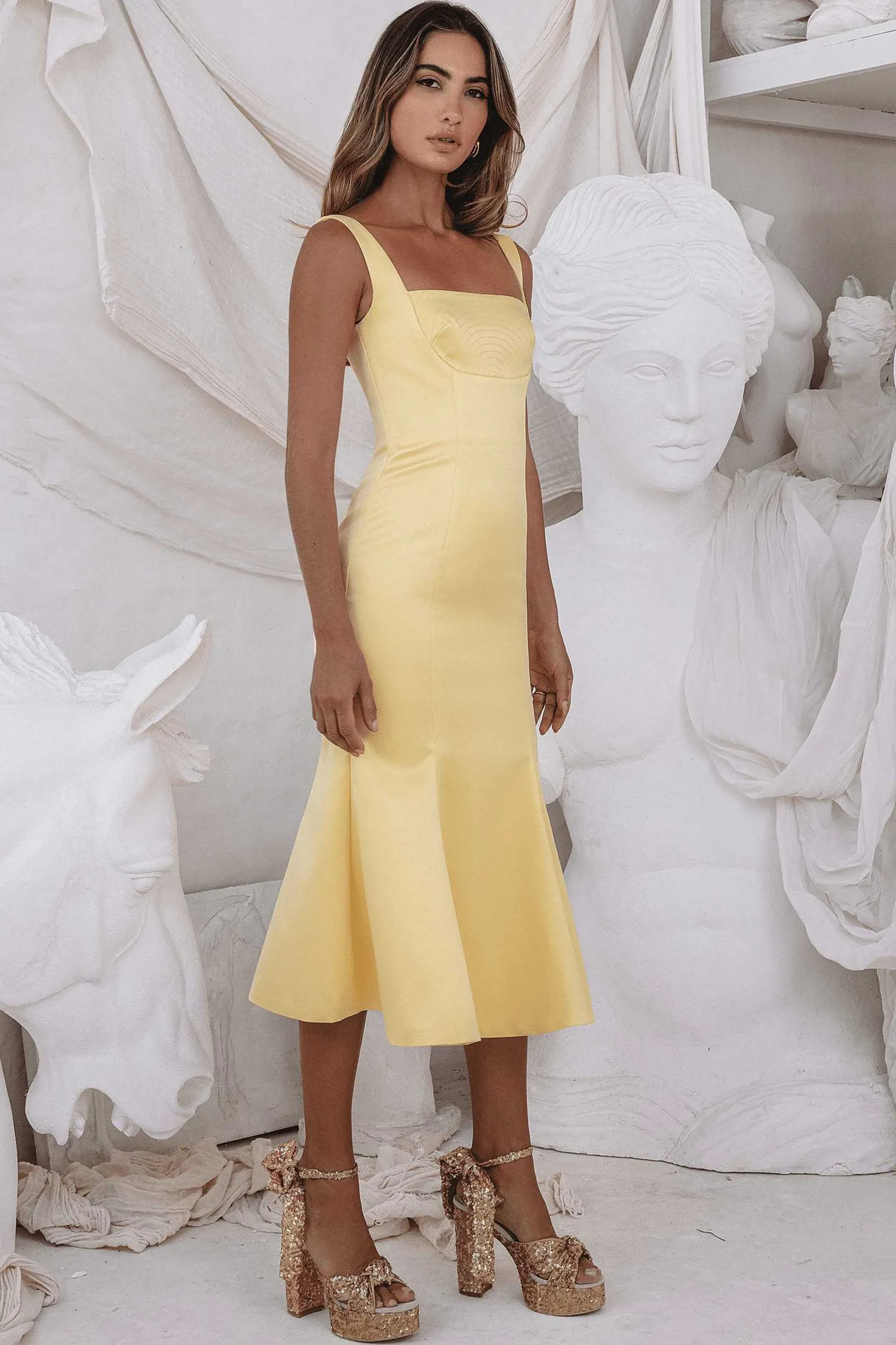 Simply Unique, Lainey Is Trending In Pretty Pastel-Yellow For Summer ’23, Making It Perfect For Special Occasions Like Summer Weddings And Complimenting Your Tan On Balmy Getaways. It’S Silk-Satin Finish Pairs Elegantly With A Cowl Neckline And The Midi Length Reveals The Perfect Amount Of Skin.