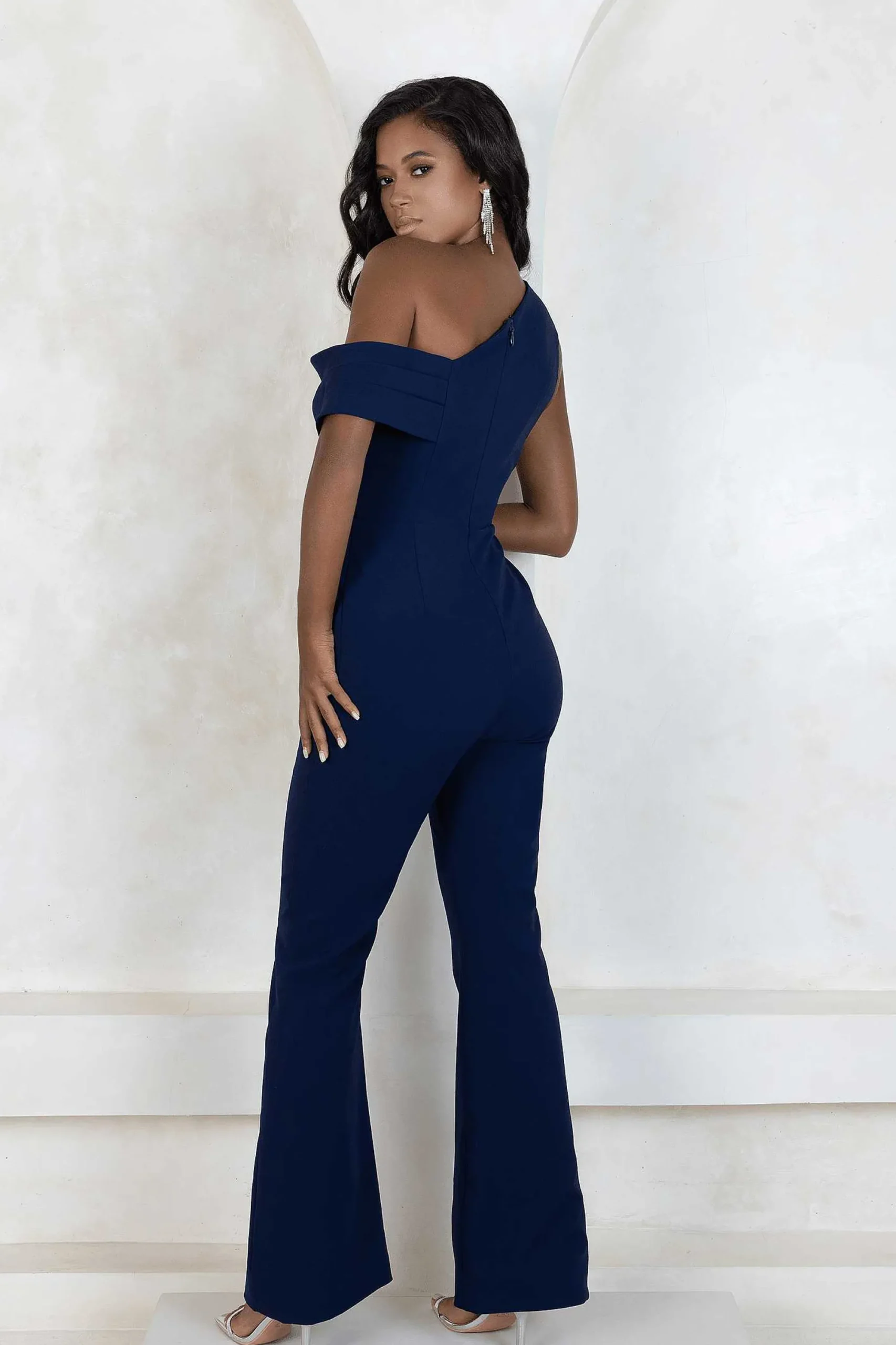 A Lavish Twist On A Classic Jumpsuit Design, Bespoke Tailored Flares Elongate The Leg Whilst Pleats Fall Neatly Over One Shoulder To Create A Sophisticated Silhouette. Finish With Refined Silver Jewellery For An Opulent Look.