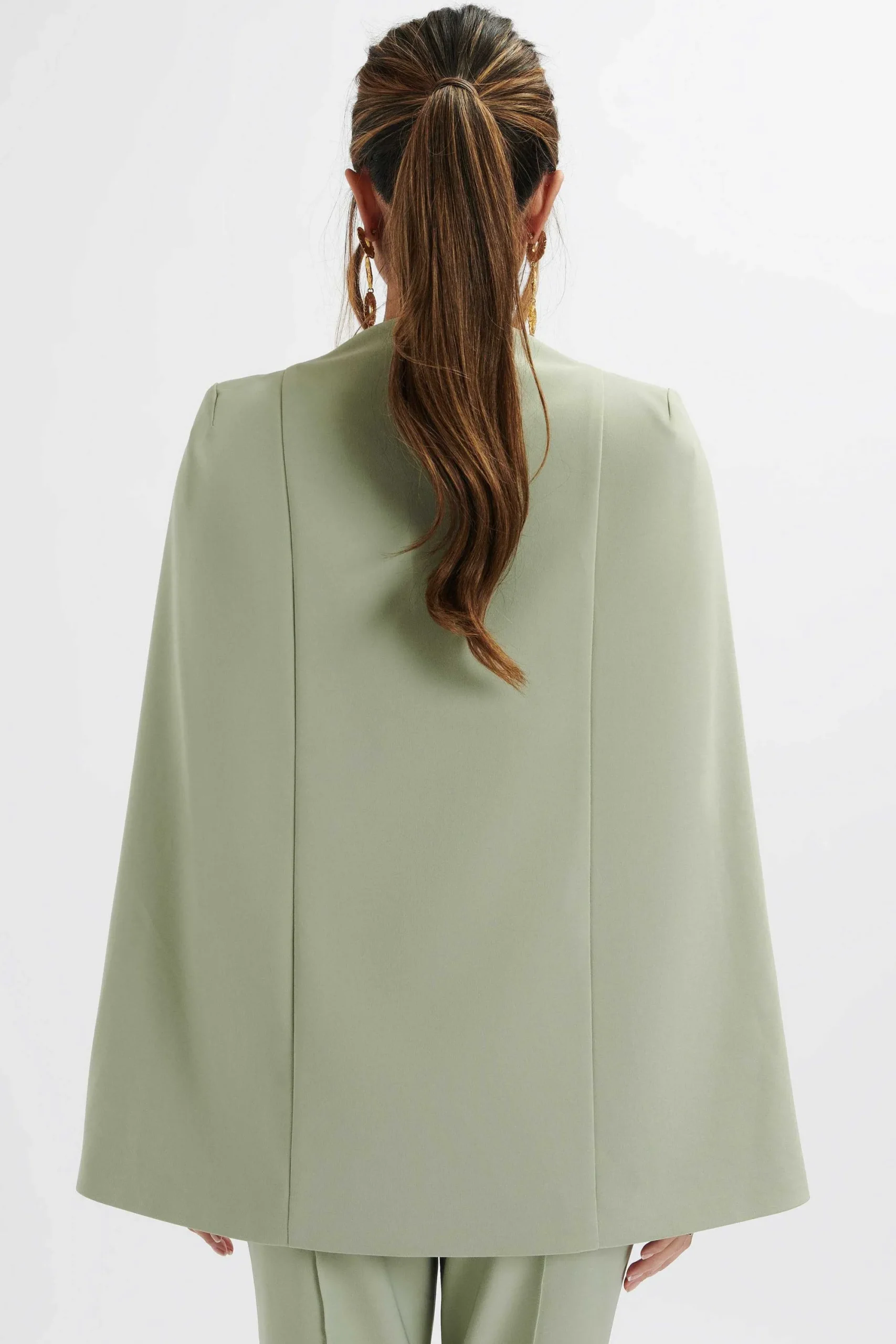 Lavish Alice Skye Belted Cape Blazer Jacket In Sage Green Cheap